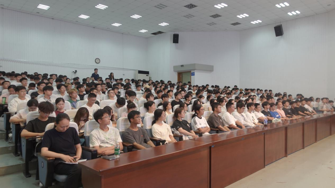 为纵深推进“代表融入大思政 校地融合育新人”活动,2025年10月10日下午,江苏科技大学梦溪校区演讲厅举办“新时代人大代表为人民服务的尽责担当”专题报告会。本次活动由马克思主义学院与海洋学院联合主办,特邀镇江市人大代表、丹阳市公安局丹北派出所所长张叶宏担任主讲人,马克思主义学院副院长阚为主持,梦溪校区2025级大一新生及马克思主义学院研究生新生共400余人参与。