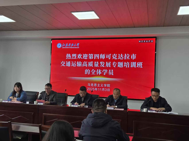2025年11月3日至9日,新疆生产建设兵团第四师可克达拉市交通运输高质量发展专题培训班在江苏科技大学马克思主义学院成功举办。本次培训旨在进一步提升地方交通系统干部的专业素养与管理能力,推动交通运输事业高质量发展。
